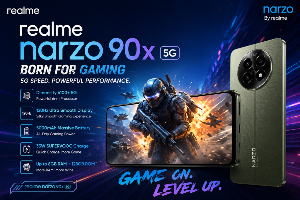 рдЕрдЧрд░ рдЖрдкрдХрд╛ рдмрдЬрдЯ тВ╣15,000 рдХреЗ рдЖрд╕рдкрд╛рд╕ рд╣реИ рдФрд░ рдЖрдк рдПрдХ 5G smartphone рдвреВрдВрдв рд░рд╣реЗ рд╣реИрдВ рдЬреЛ performance + battery + gaming рд╕рдм рд╕рдВрднрд╛рд▓ рд▓реЗ тАФ рддреЛ Realme Narzo 90x 5G рдЕрднреА рдХрд╛рдлреА рдЪрд░реНрдЪрд╛ рдореЗрдВ рд╣реИред