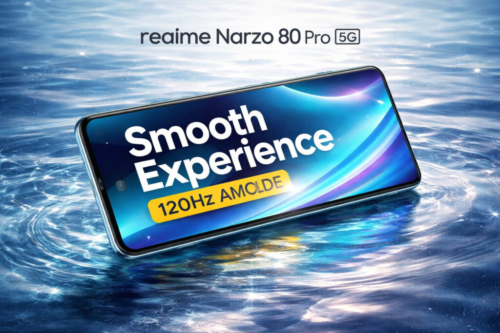 тАЬRealme Narzo 80 Pro display showing 120Hz smooth scrolling, vibrant colorsтАЭ