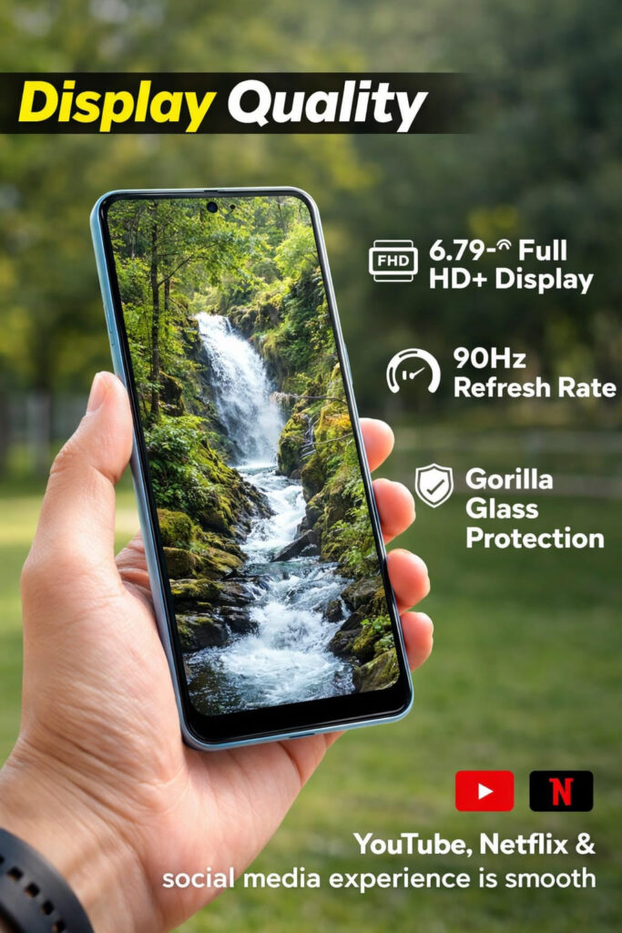 यह डिस्प्ले बड़ा और स्मूद है, जो वीडियो देखने और स्क्रॉलिंग के लिए काफी अच्छा है |